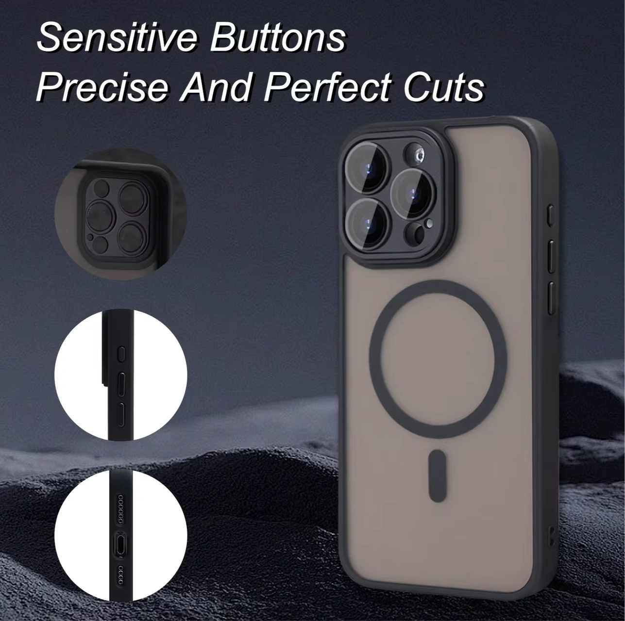 The iPhone 13 14 15 16 Pro Max Matte Shockproof Frosted Black Case with MagSafe is a sleek and durable back case designed specifically for Apple devices. Made from a combination of silicone and plastic materials, this hard case offers waterproof, shockproof, and anti-scratch features for maximum protection. The matte finish and glossy design add a touch of luxury to your device while the fast charging and wireless charging capabilities make it convenient for use. With a magnetic wireless charging standard, this case is a practical and stylish choice for your iPhone.