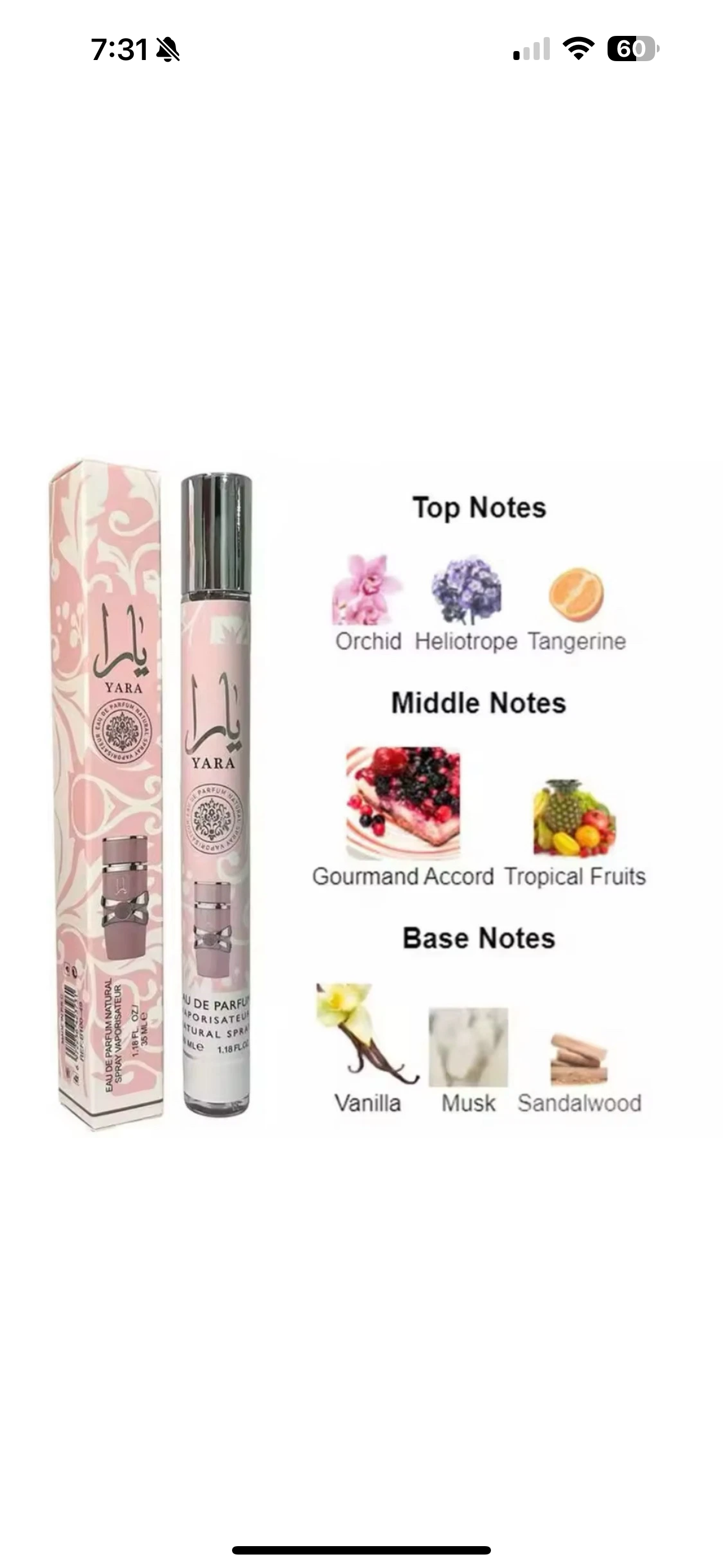 Lattafa Yara Eau de Parfum is a luxurious scent for the confident, modern woman. With notes of orchid, tangerine, tropical fruits, and warm vanilla, it creates a sweet and seductive aura that turns heads. Elegantly packaged and perfectly sized for travel, it’s the ideal gift or personal treat to uplift your mood and leave a lasting impression.